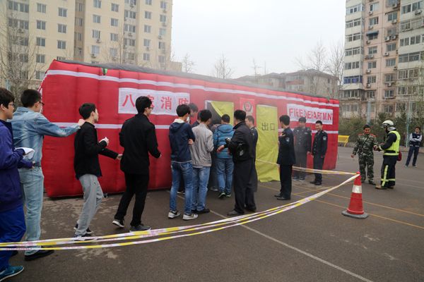 最后,同学们在家属区运动场进行了逃生体验和灭火演练,模拟了火灾情况下的逃生场景,并学习了如何使用灭火器。