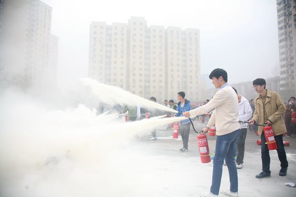 最后,同学们在家属区运动场进行了逃生体验和灭火演练,模拟了火灾情况下的逃生场景,并学习了如何使用灭火器。