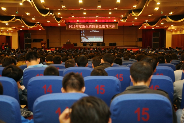 4月14日,学校在科技会堂四层报告厅联合举办了2015年消防与交通安全教育大会。来自八个学院一年级学生1100余人参加了讲座。