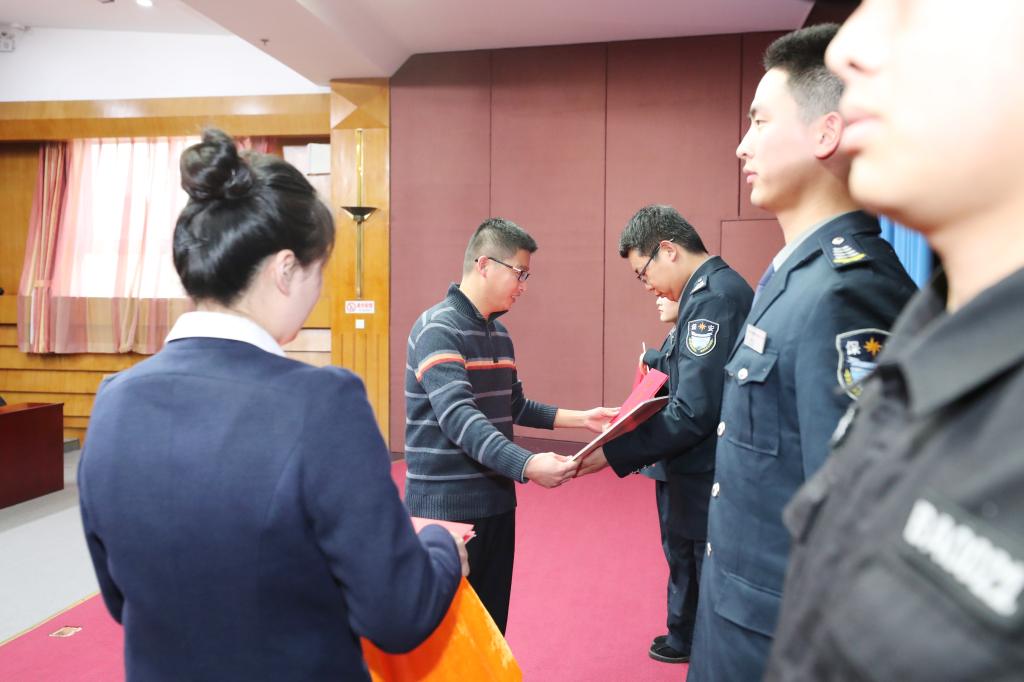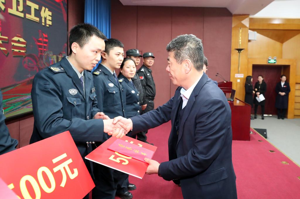 保卫处副处长胡洁宣读了表彰决定及获奖人员名单,与会领导分别为获奖保安员颁奖并合影留念。