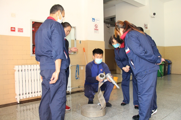 为做好此次活动,保卫处认真筹划,细心准备物资器材,精心设置训练现场,保证了训练及考核有序进行。昌平区消防救援支队来校指导训练与考核工作。参加本次实操实训的人员有餐饮、物业、绿化、商贸、锅炉房等教职员工74人。实操实训分为灭火器“灭真火”操作、消火栓“出真水”操作,目标是使培训对象达到“小火会用灭火器、大火会用消火栓”的要求,确保受培训人员关键时刻能够“灭得了真火”、“出得了真水”。