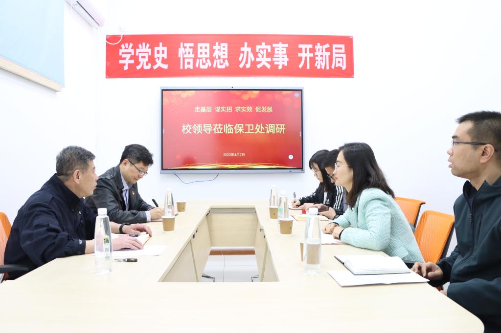 4月7日上午,副校长谭凯深入保卫处调研工作,实地考察了学校平安校园管理服务中心的运行情况,并与保卫处全体同志围绕学校治安、交通、消防、安防、安全教育、保卫干部队伍建设等方面开展了座谈交流。